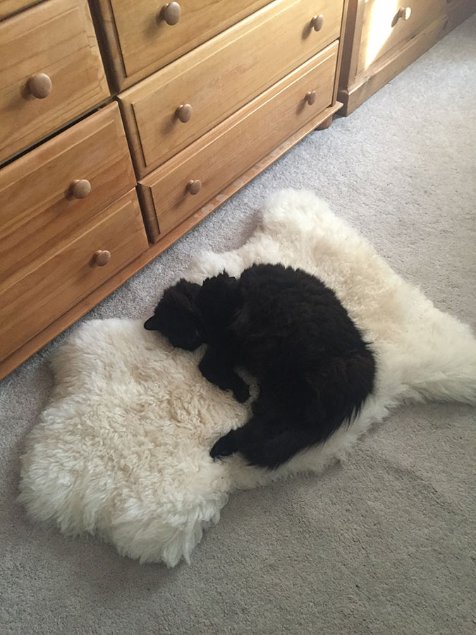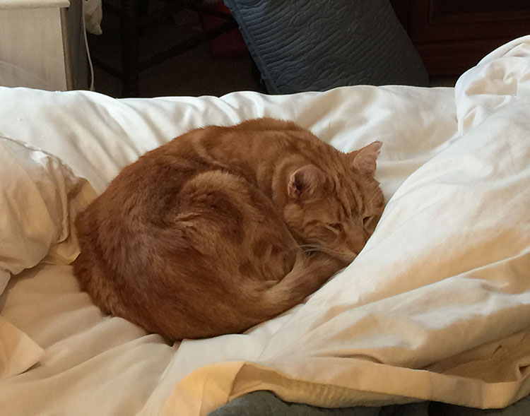 Now we have to excuse ourselves when we disturb his slumbers on our bed.